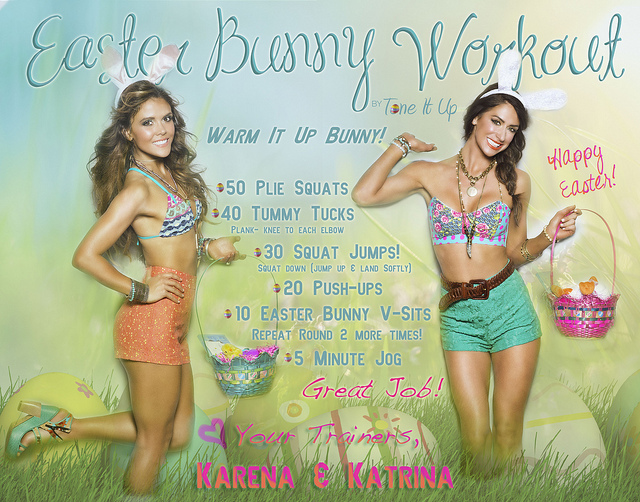 Grab SomeBunny to join you for this full body toning circuit to get you in the spirit for a Hoppy Eggster! Get your #TIUteam weekly schedule @ http://toneitup.com/2014/04/weekly-fitness-schedule-tiu/