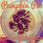 DESSERT – Pumpkin Pie Overnight Oats. In a mason jar, mix together 1/3 cup old fashioned oats, 1/3 cup milk of your choice, 1/2 mashed ripe banana, 1/2 scoop vanilla protein powder, 2 heaping tablespoons pure pumpkin purée, 2 tbsp. vanilla non-fat Greek yogurt (or almond yogurt), 1 tsp. chia seeds, generous dash of cinnamon and nutmeg. Cover and refrigerate overnight. Top with pecans, pepitas, and dried cranberries in the morning!