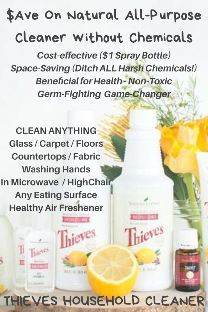 —Thieves Household Cleaner Formulated with the power of Young Living’s Thieves essential oil blend, Thieves Household Cleaner is a concentrated, versatile solution that gives you a deep clean when cleaning glass, countertops, scrubbing, degreasing, carpets, floors, walls, spot cleaning, dusting, and more—all without harsh chemicals.