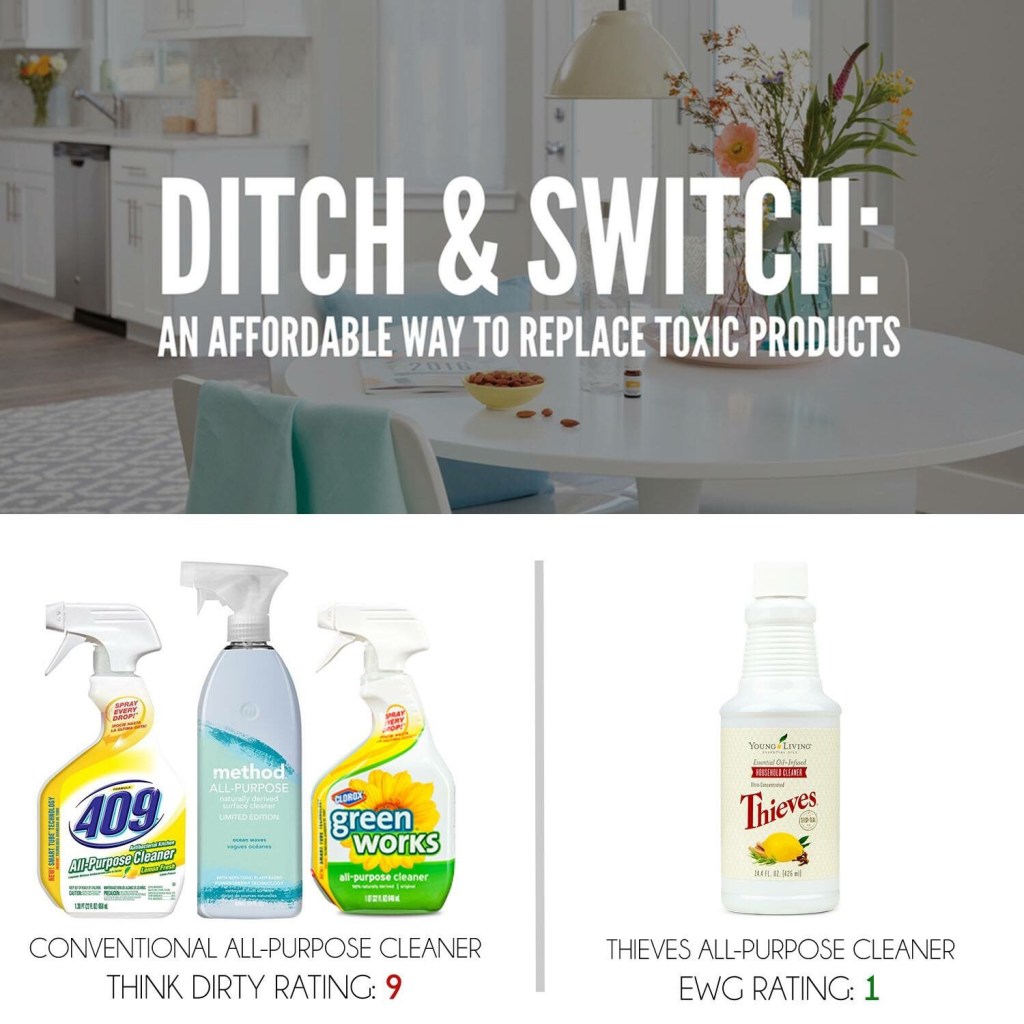 So, you can afford to be cleaner and greener. In fact, it will save you $, time and space for allllll those bottles, you won’t need stinking up the place anymore!!! Thieves cleaner comes concentrated so you can dilute and make a ton of bottles that will last at least a year and clean your whole home.
